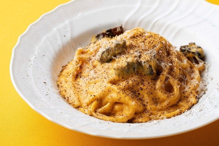 「味ぽん」を練り込んだ生パスタを使用。ソースにも「味ぽん」を使用しており、特に『「味ぽん」ボナーラ』は、“追い「味ぽん」”もおすすめです。(卓上にミニサイズの「味ぽん」を設置予定です。)