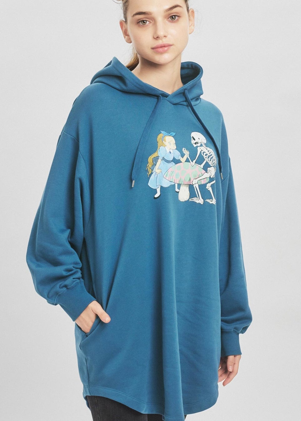ふっくらした肌触りの飛び裏毛を使用した、ビッグシルエットのプルオーバーパーカー。サイドポケット付き。