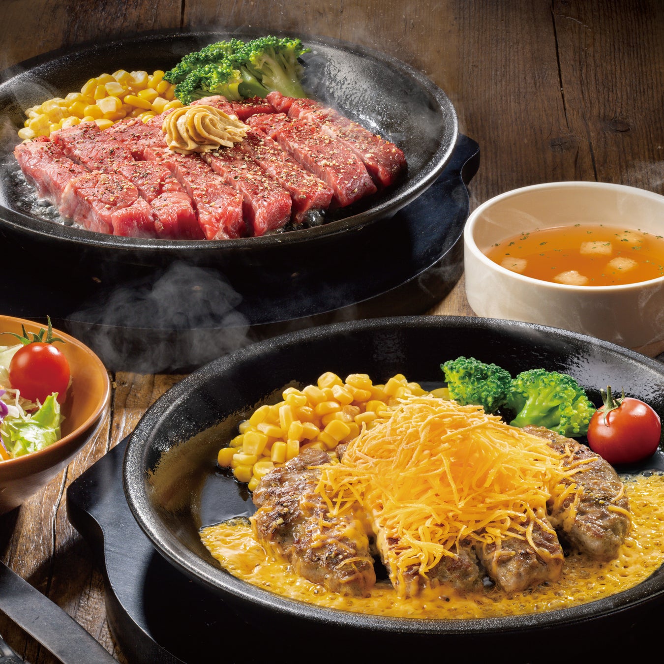 「ロックスハンバーグ」は、多くの人にあつあつで美味しいハンバーグやステーキを楽しんでいただけるブランドとして2023年3月にデビューしました。自慢のロックハンバーグのほか、柔らかいビーフハンバーグ、牛ロースステーキやひき肉を使ったグランドライスなどの“あつあつ”なメニューをお楽しみいただけます。また、ご家族みなさまでロックスハンバーグでのお食事を楽しんでいただけるよう、鉄皿を使わないお子さまセットのご用意もございます。