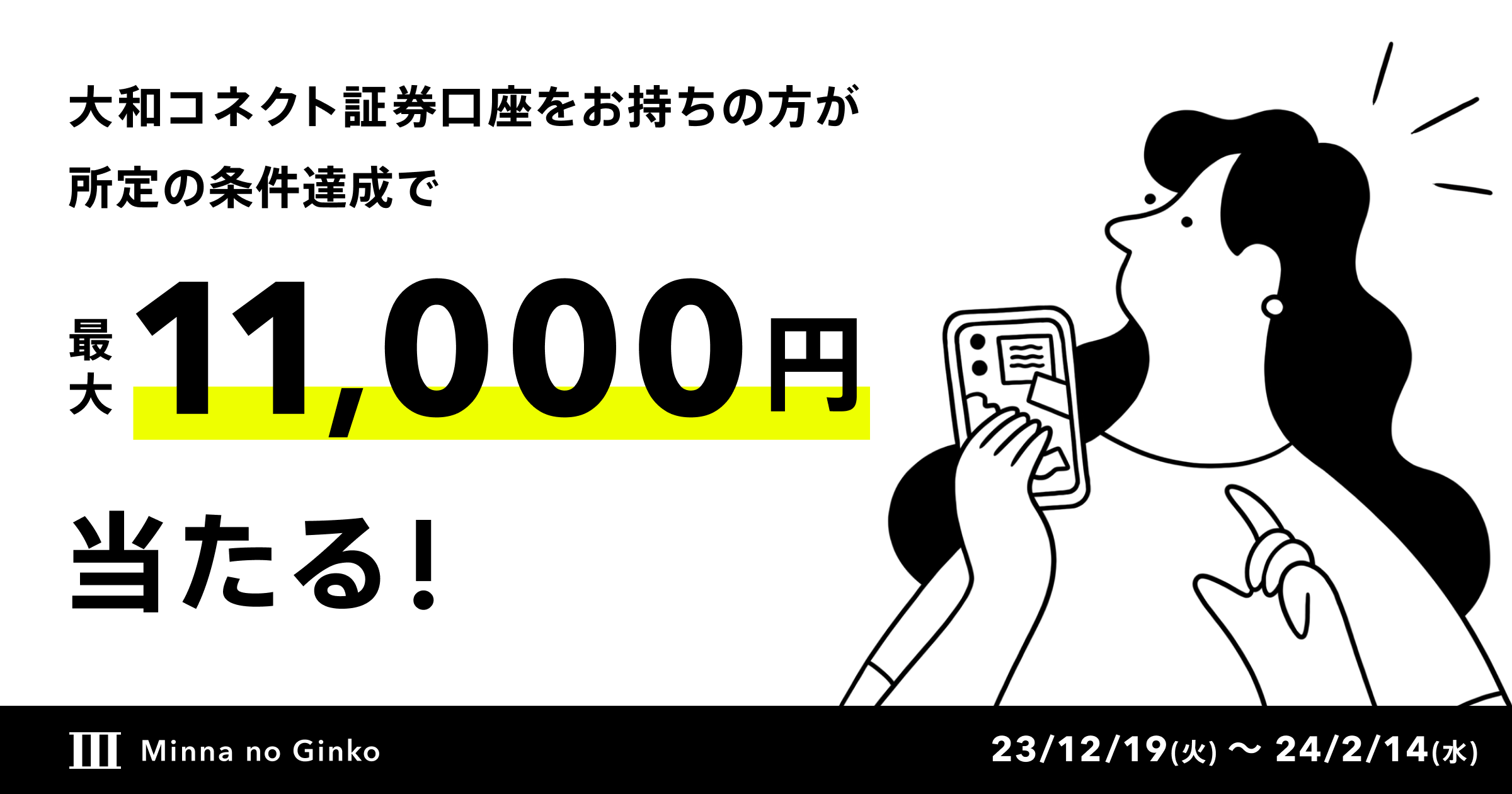 最大11,000円が当たる!大和コネクト証券紹介キャンペーン
