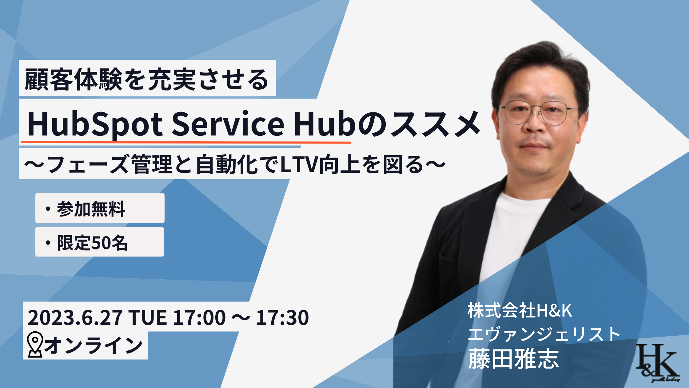 株式会社H&Kは、2023年6月22日(木)17:00~17:30、ZOOMにて「顧客体験を充実させるHubSpot Service Hubのススメ〜フェーズ管理と自動化でLTV向上を図る〜」について語るウェビナーを開催いたします。