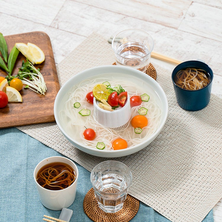 直径12~24cmの器をご用意いただければ、どこでも手軽に、すぐ流しそうめんが楽しめます。