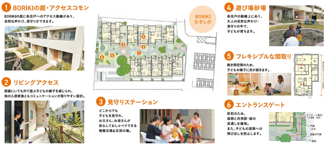 子育て共感賃貸住宅「ヘーベルメゾン BORIKI」は、地縁が薄く孤立しがちな子育て世帯に、子育てしやすい環境を提供する賃貸住宅です。自然な交流を生む空間設計と、入居前後のサポートやサービスにより、子育ての喜びや悩みを共感できるコミュニティ形成を促進し、親と子どもが笑顔で成長できる環境をデザインしています。