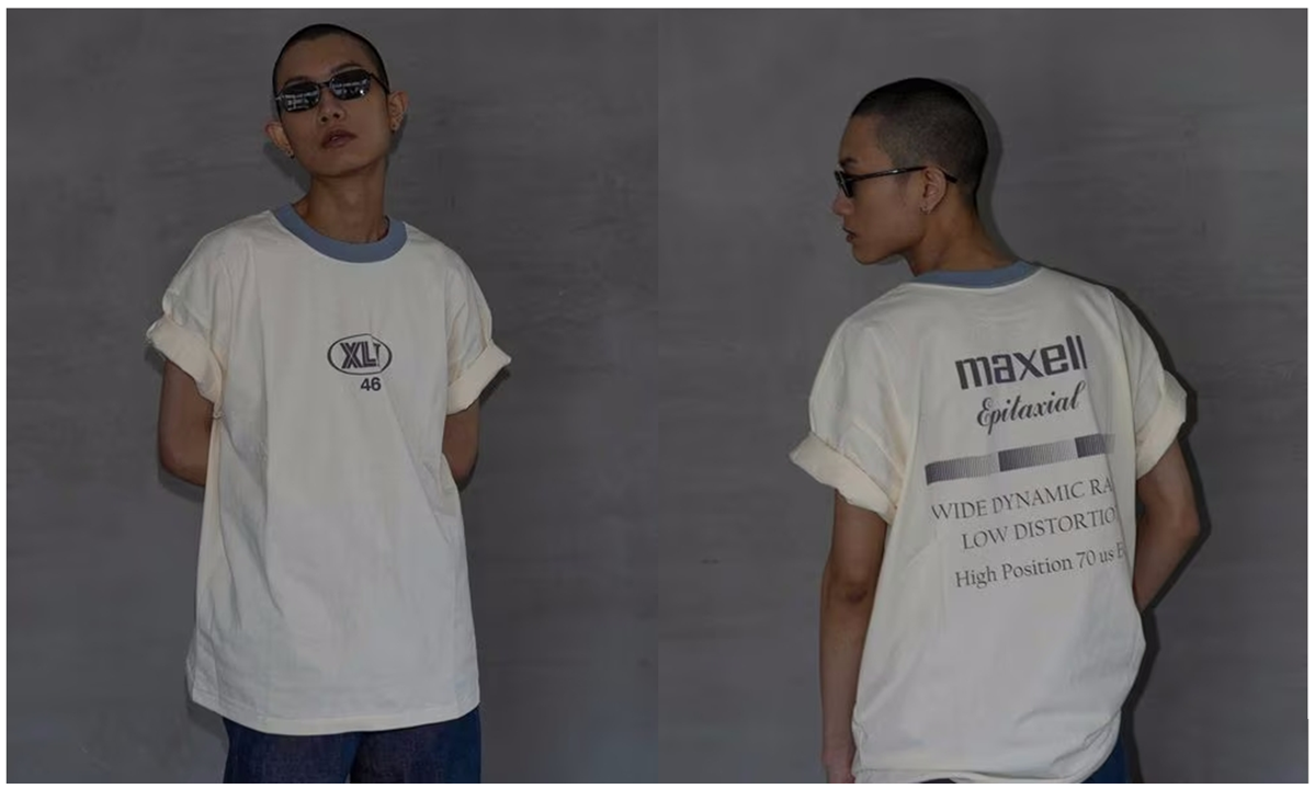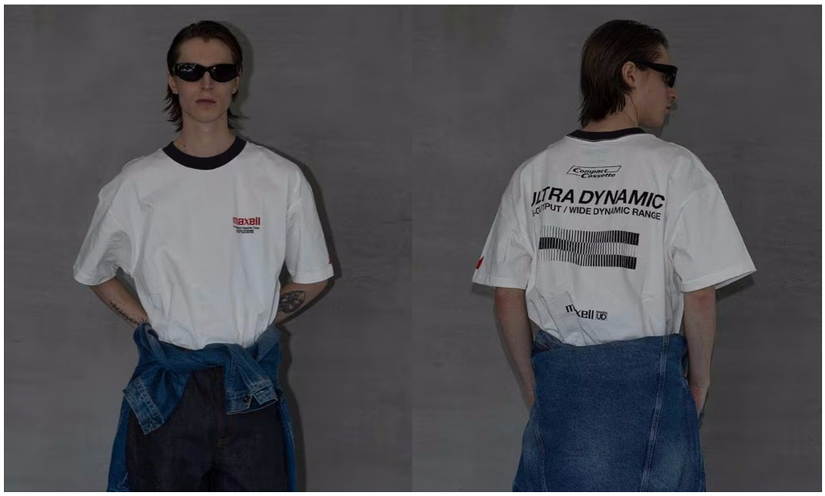 マクセルと「monkey time」がコラボレーション 「maxell」ブランドロゴがトリム プリント Tシャツに採用