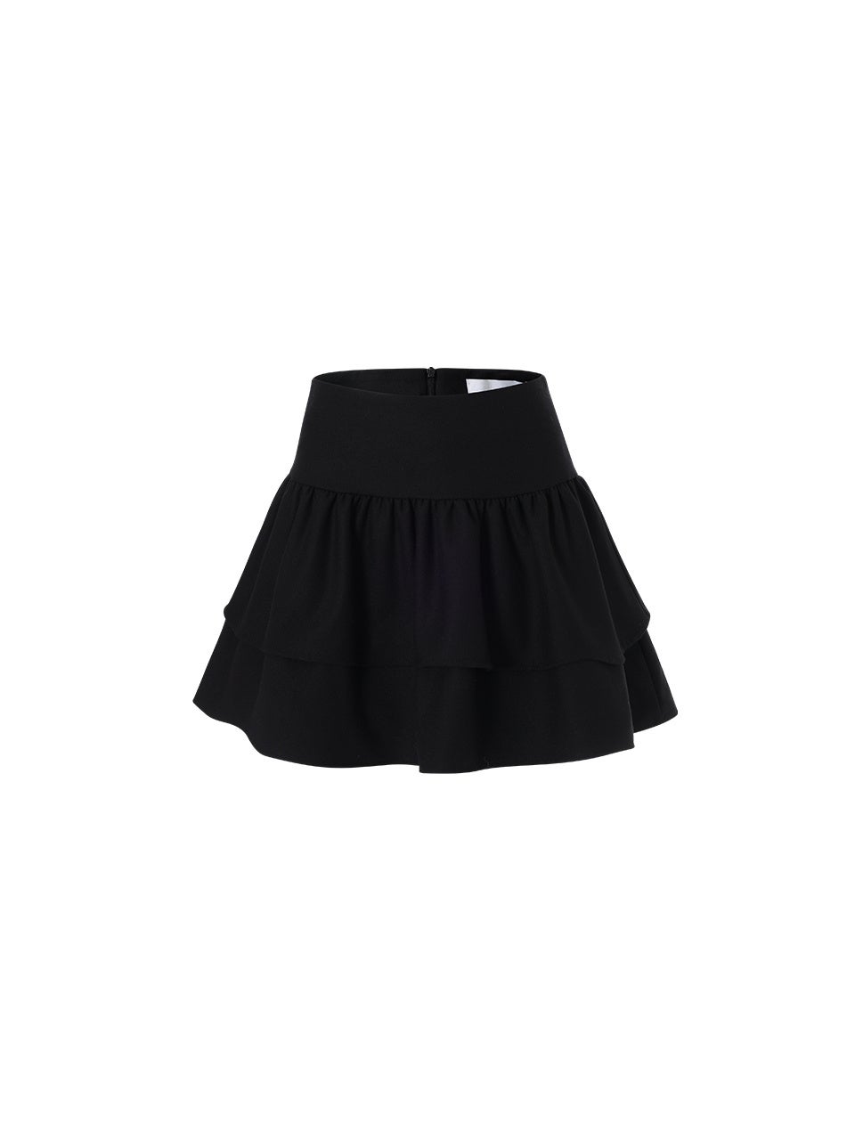 スリムなウエストラインと2段のフリルデザインでボリュームのあるシルエットを演出。