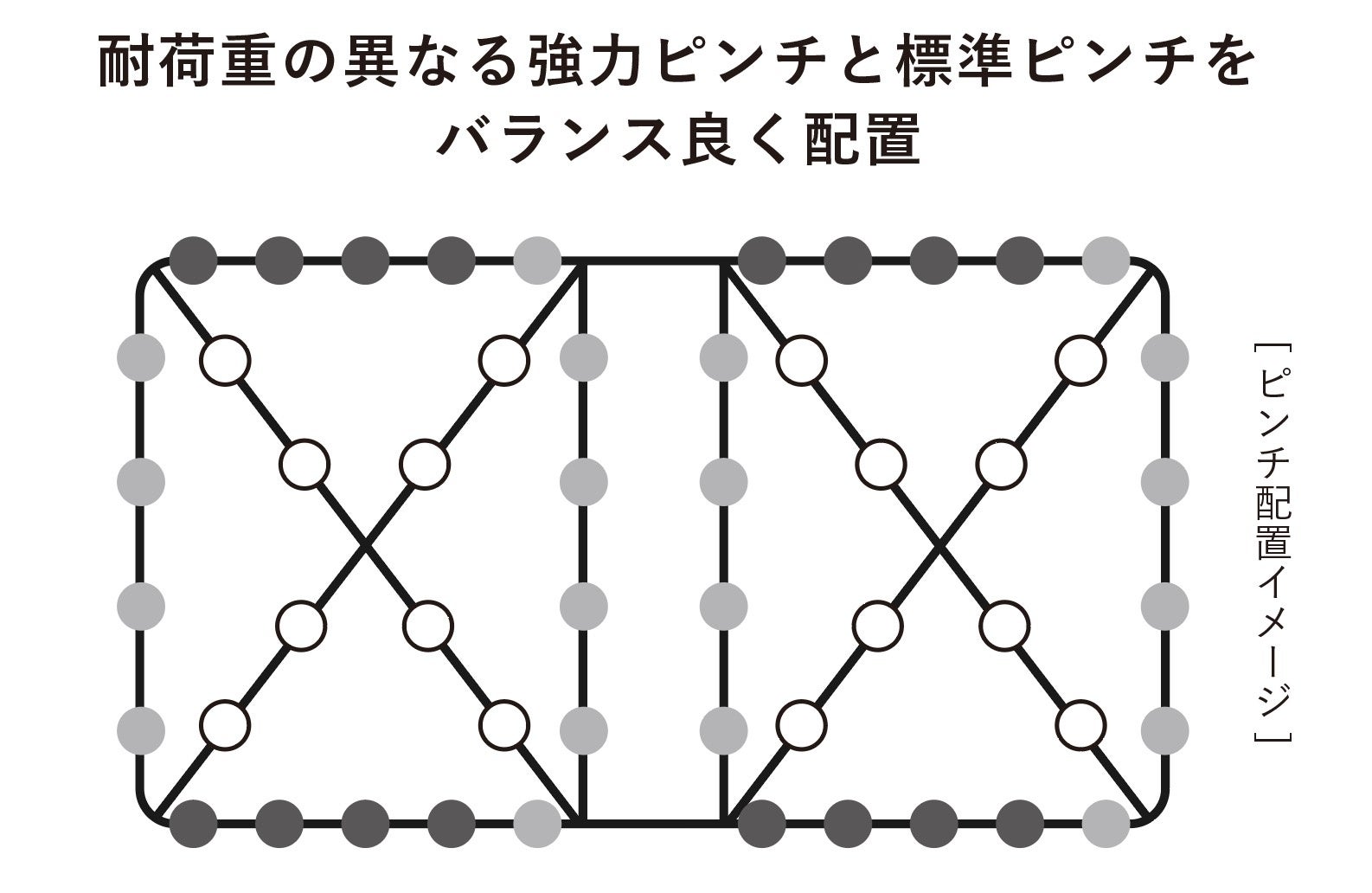 耐荷重の異なる強力ピンチと標準ピンチをバランス良く配置