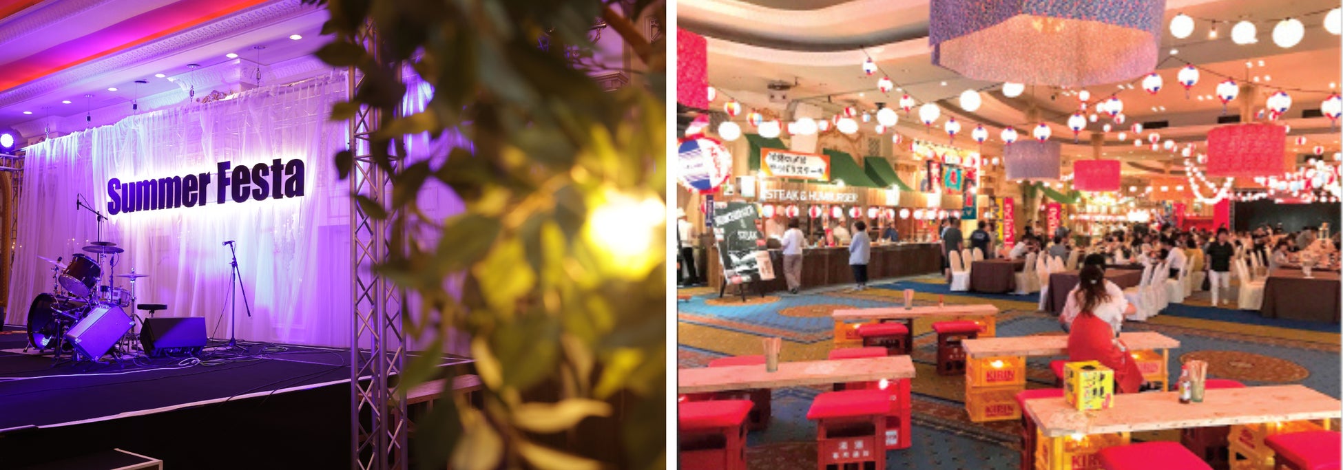 緑豊かな木々と水面が美しい街中のオアシス『ホテルクリスタルパレス(茨城県ひたちなか市/副総支配人:大薗達也/客室数:100)』は、選べる30種類以上の屋台料理と約30種類のドリンクが飲み放題のグルメイベント『サマーフェスタ2025』を開催いたします。フォトジェニックな装飾の数々と、風情感じる屋台で楽しむ和・洋・中のバラエティーに富んだお料理、そして夏にぴったりのドリンク類をご用意いたします。