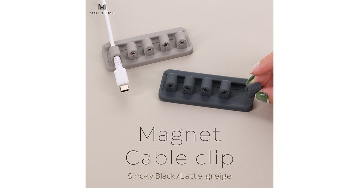 株式会社MOTTERU(モッテル)(本社:神奈川県海老名市、代表取締役:櫻田良太)は、最大5本のケーブル収納が可能なケーブルクリップを発売します。ベースからクリップ部分がつけ外しが可能なマグネットタイプで、カラー展開は2色となっております。シーンに合わせてお選びください。