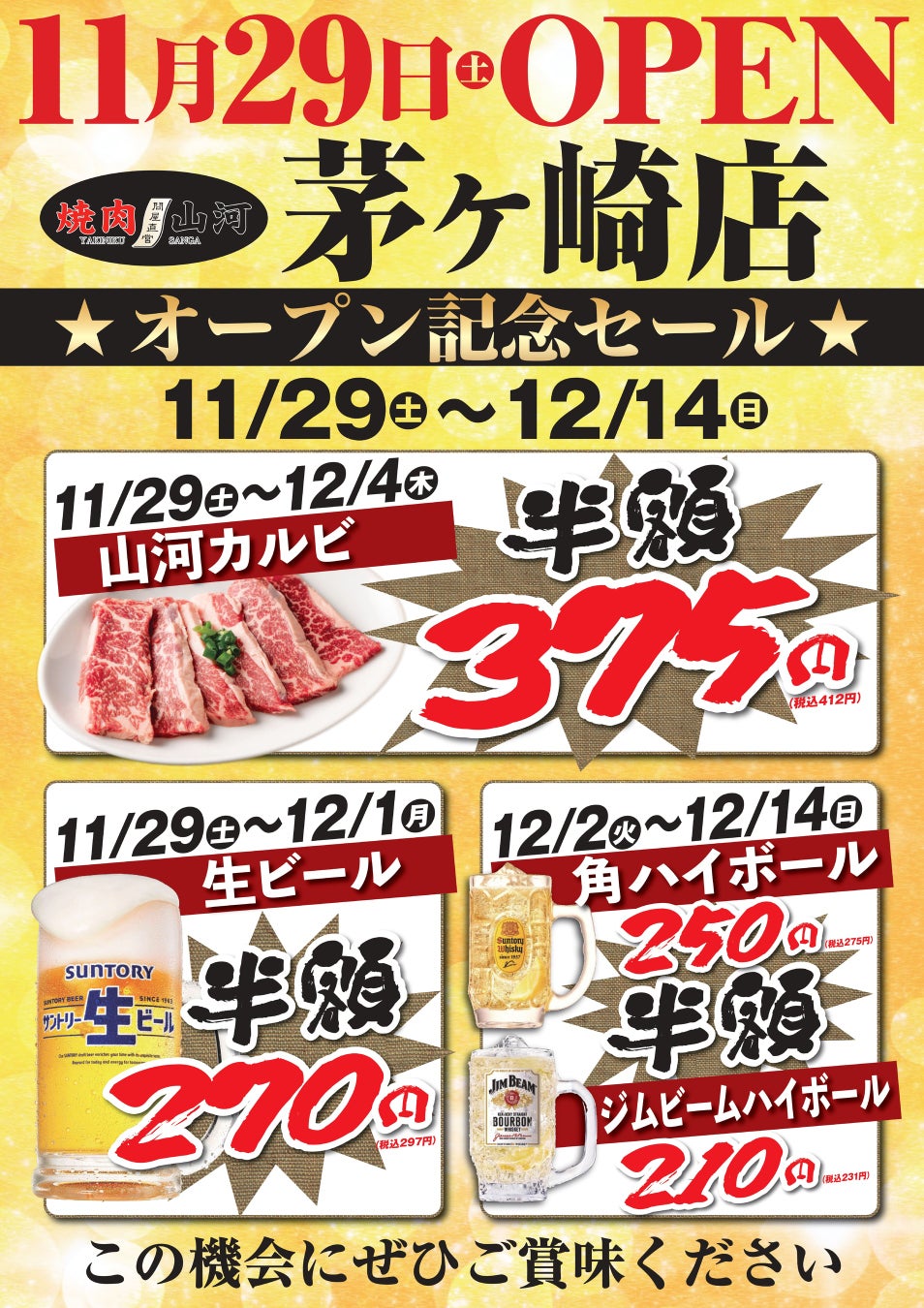 この機会にぜひ、「焼肉山河 茅ヶ崎店」にて自慢の焼肉とともにお楽しみください。
