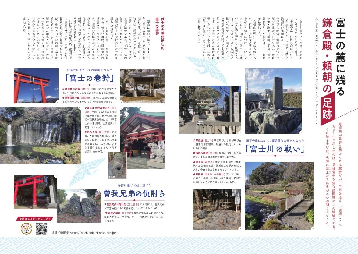 パンフレットでは、「富士川の戦い」や「富士の巻狩」などの静岡県の富士山麓地域に残るエピソードを中心に、源頼朝・北条氏ゆかりの史跡を、写真とともに掲載しています。