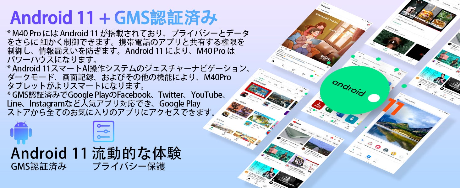 最新バーションのAndroid11オペレーティングシステムを搭載されており、バブル機能、デバイスコントロール、スクリーンレコードなど新機能で、タブレットをよりスムーズに操作可能になります。GoogleのGMS認証済み、Google Play ストアから全てのお気に入りのアプリにアクセスできます。アプリケーションも快適にご利用できます。GPS機能も付き、タブレットにオフラインマップをダウンロードすると、Googleマップが利用できます。