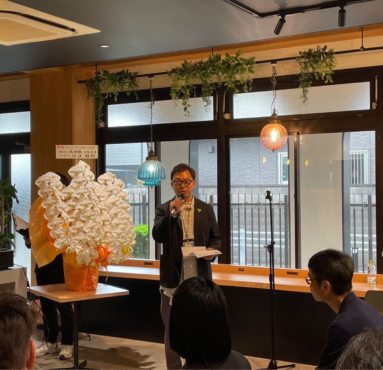 式典では理事長 豊田による決意表明、協同組合関西ファッション連合 専務理事 糸井弘一氏、卒業生組織・OIFer LINK会長 岩光栄太郎氏による祝辞に続き、新校名を刻んだサインの除幕式が執り行われました。繊研新聞・繊維ニュースをはじめとする報道関係者も参加するなか、ヴォートレイルの「独立」と新たな旅立ちを内外に向けて宣言しました。