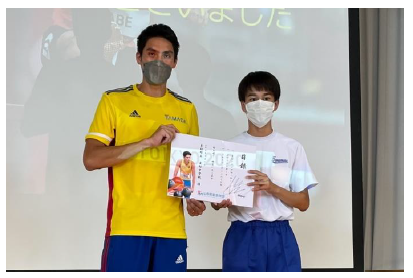 また、講演では、高校から大学時代の活躍、その後の低迷期、そしてオリンピック出場までの自身の経験のなかで、様々な挫折や喜びがあったことを踏まえて、挫折やスランプからの抜け出し方や夢・目標を叶える為にするべきことなどを子ども達に伝えました。