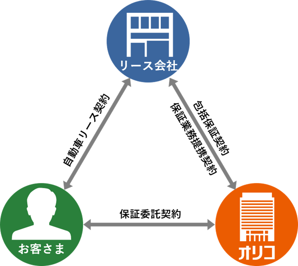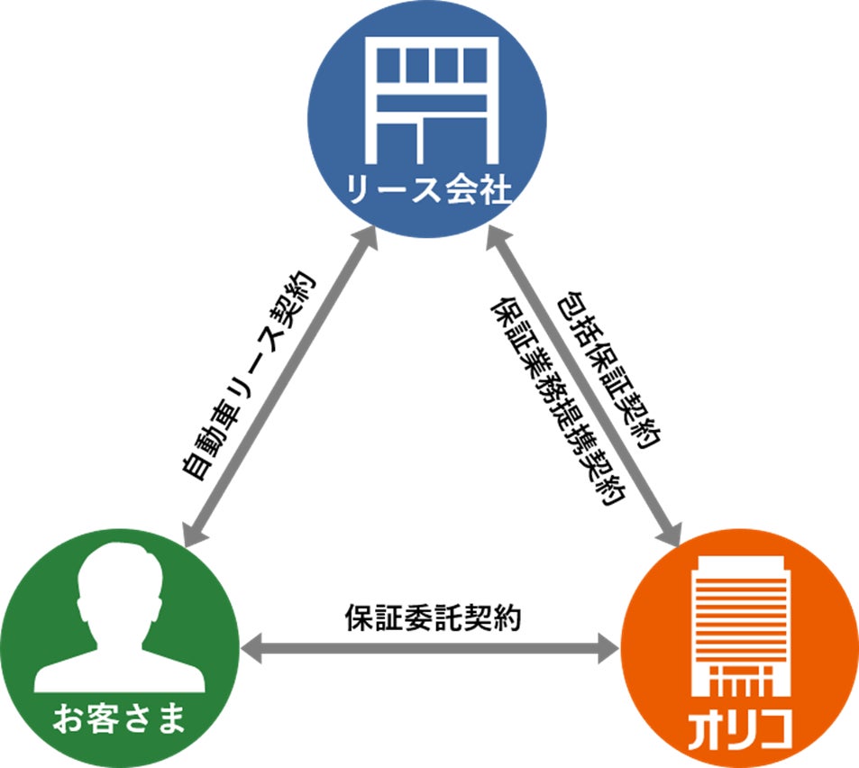 「オートリース保証」は、東邦リースがお客さまと自動車リース契約をする際に、オリコがお客さまの債務保証を行い、リース代金の回収などを代行するスキームです。