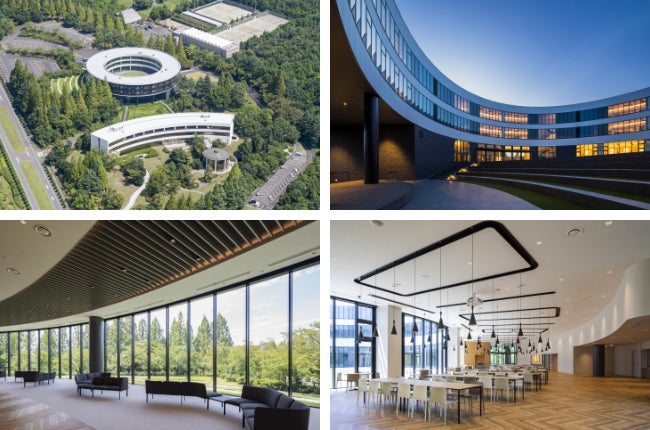 新しい円形の国際寮が円弧状の既存校舎とともに、一体感ある造形を創っていて美しい。寮室が円形の外周部に配置されており、全ての室の大きな開口部から豊かな自然が望める。特徴的なのは円形の内側で、共用廊下でもある寮室前の多目的スペースは日常生活の中でコミュニケーションが自然に育まれるようにゆったりとした奥行きで計画されている。季節によって表情を変えるキャンパスの中で、ガラスに優しく映り込む緑や円形の中庭は、全寮制で人生の一時期を過ごす生徒に取って記憶に残る風景になることと思う。