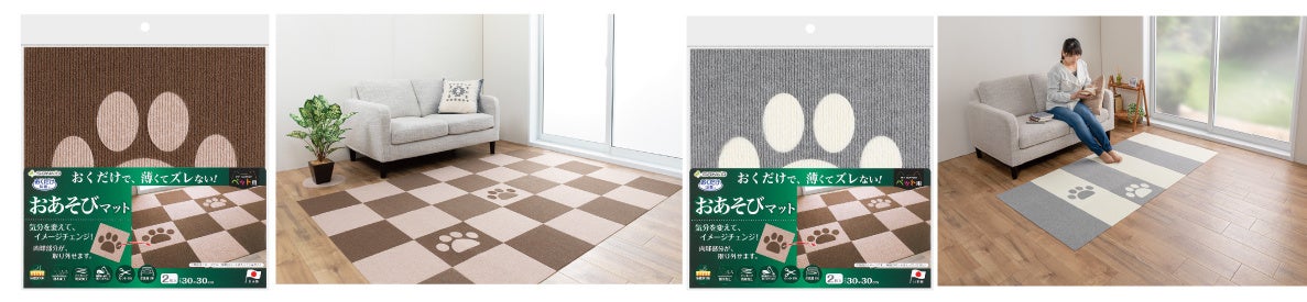 今回のイチオシ商品「おくだけ吸着おあそびマット肉球 2枚入」は、おくだけで取り付け、取り外しが簡単にできます。薄くてつまずきにくく、掃除機をかけても吸い上がらないためお掃除もラクラク!無地のタイルマットと組み合わせて絵柄の部分は取り外しでき、入れ替えてアレンジのでイメージチェンジ!