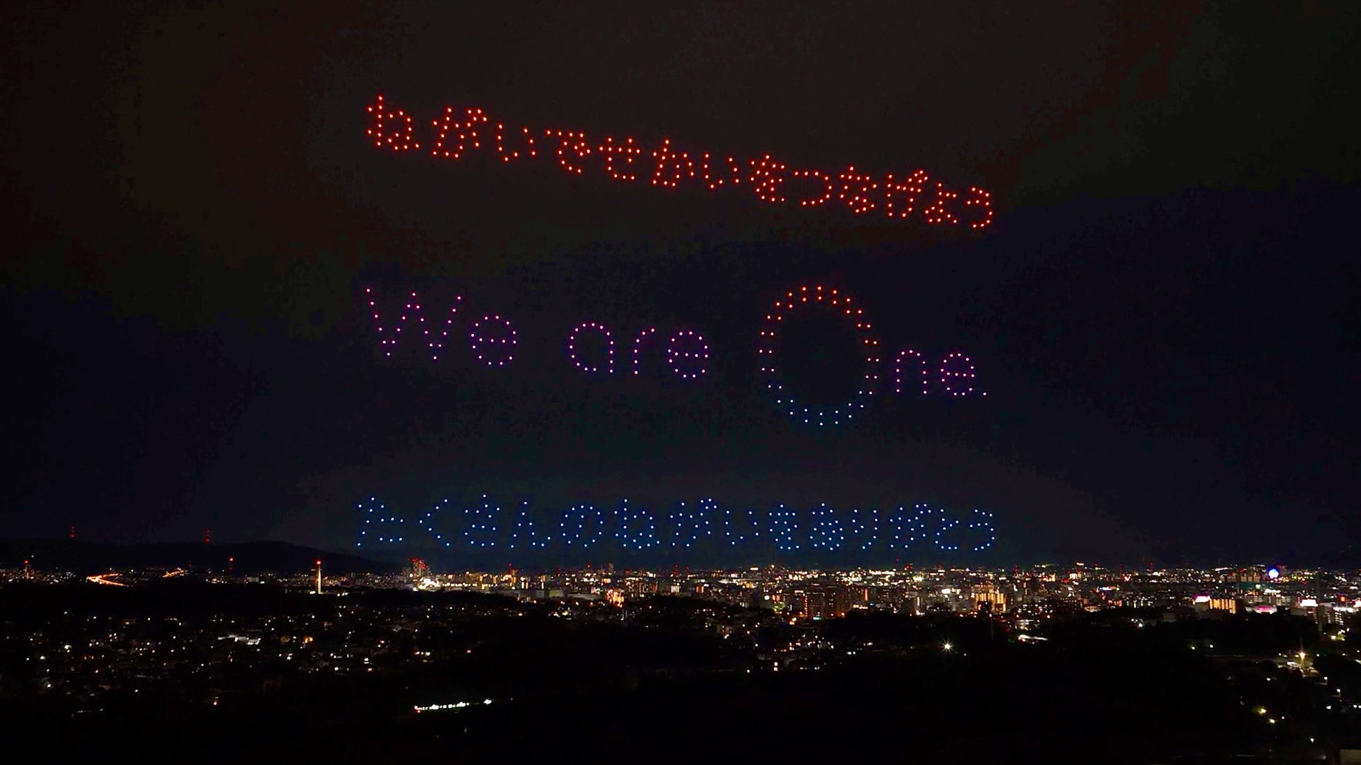 3,000機のドローンにより、万博閉幕日(2025年10月13日)に披露された特別演出「One World, One Planet.」のドローンショーを再び夜空に描きました。