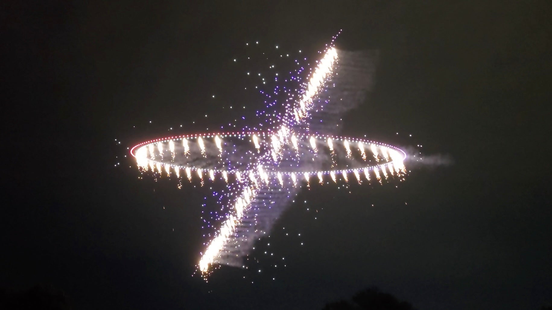 約14分にわたるショーでは、ドローンによる精密な光の演出に加え、従来のLEDライトの約6倍の輝度を持つフラッシュモジュールによる閃光、さらに花火を搭載したドローンによるダイナミックを組み合わせて実施しました。