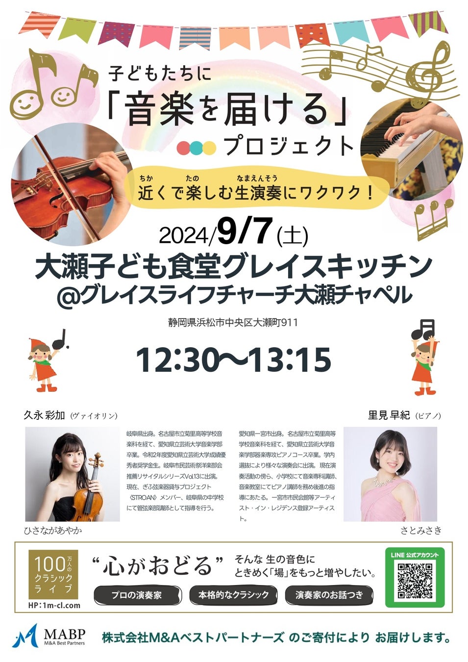 【M&Aベストパートナーズ×100万人のクラシックライブ】9月7日(土)にグレイスライフチャーチ大瀬チャペル(静岡県)にて、クラシックライブを開催!