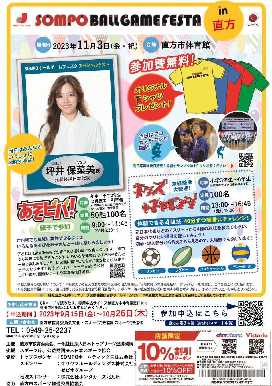 直方市では、子どもたちによりスポーツに親しみをもって楽しんでいただく新たな事業として、『SOMPO ボールゲームフェスタin直方』(以下、「ボールゲームフェスタ」)を実施いたします。