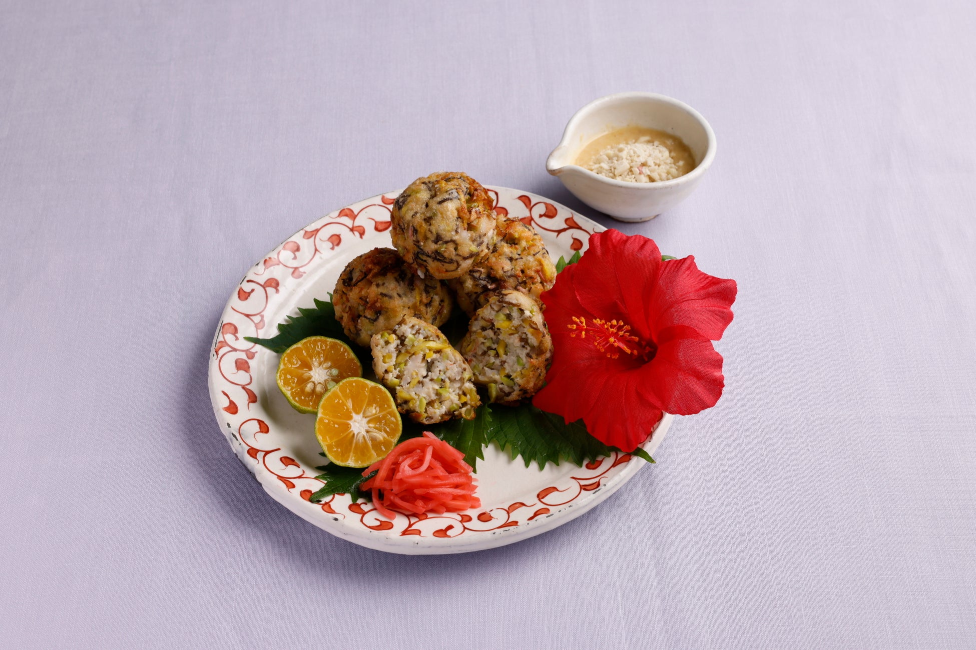 料理名:「オキふわ盛り~シークワーサーごま味噌ース~」