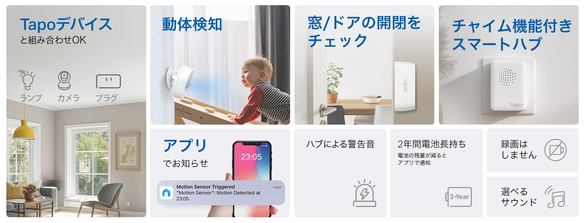 Tapoスマートセンサーシリーズ:https://www.tp-link.com/jp/technology/tapo-sensor/