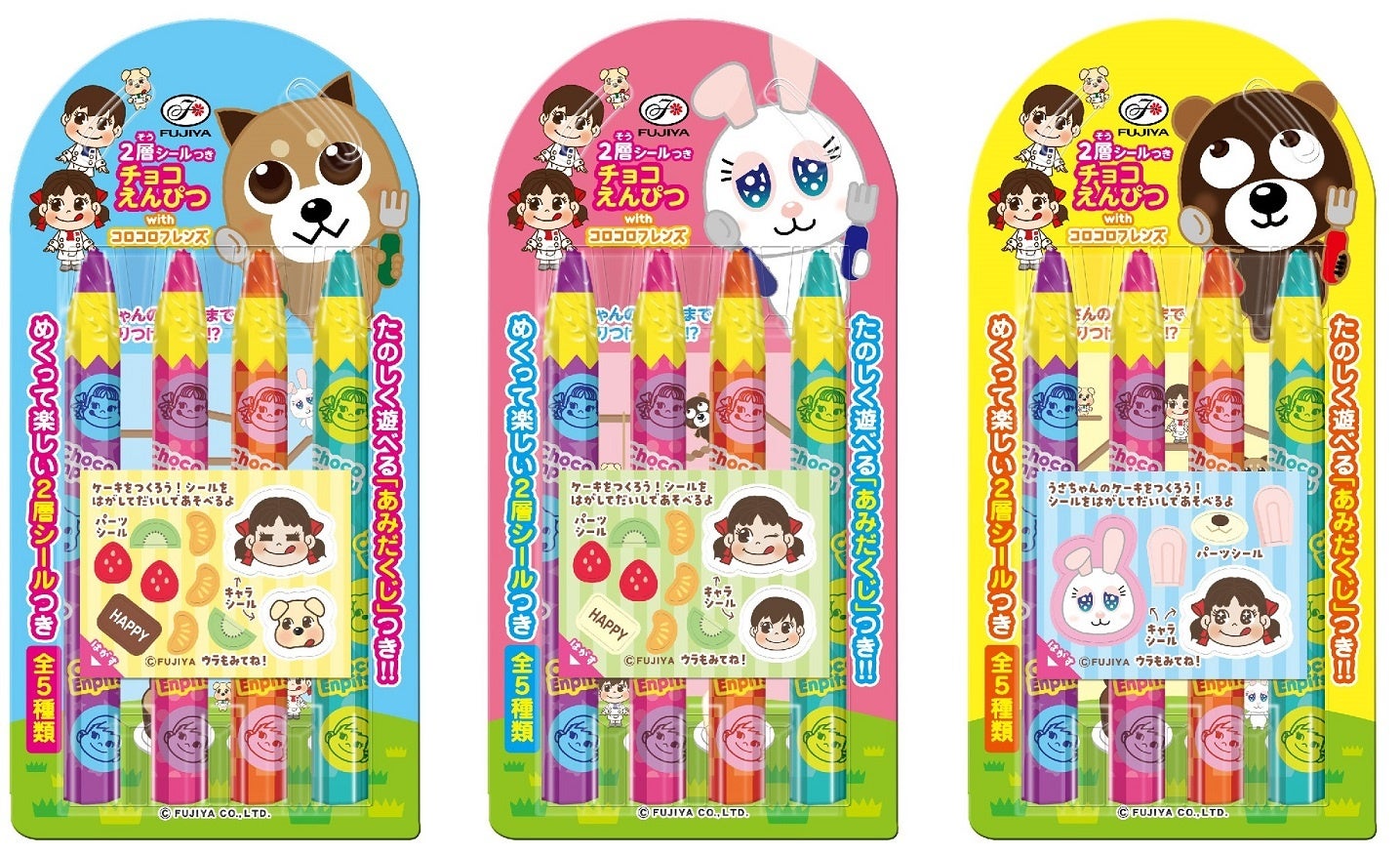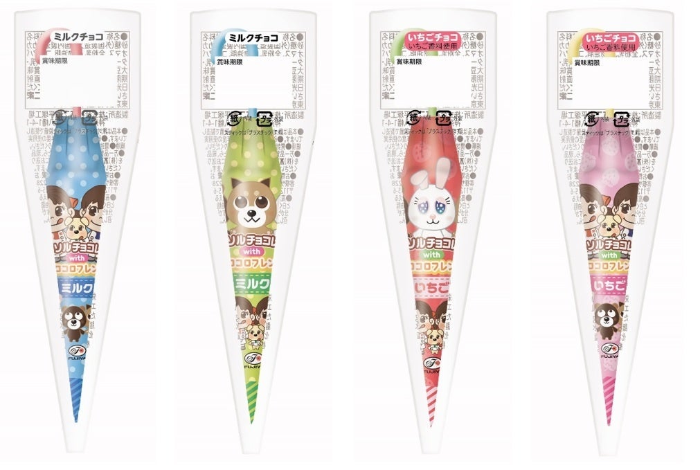 不二家の子ども向けロングセラーチョコレート「パラソルチョコレート」「ペコポコチョコレート」「チョコえんぴつ」のパッケージが、不二家洋菓子店の人気商品から生まれた新キャラクターが登場する「コロコロフレンズ」の世界観をテーマにしたかわいいデザインにリニューアルします。