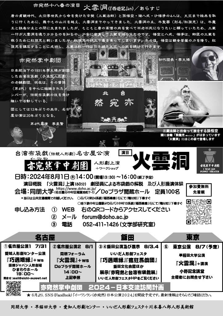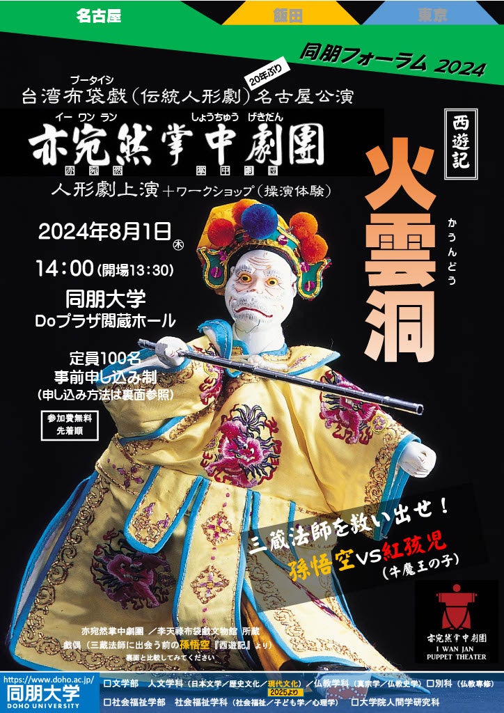 【同朋大学】同朋フォーラム2024「台湾布袋戯(伝統人形劇)」20年ぶりの名古屋公演~亦宛然掌中劇団 火雲洞(西遊記より)~