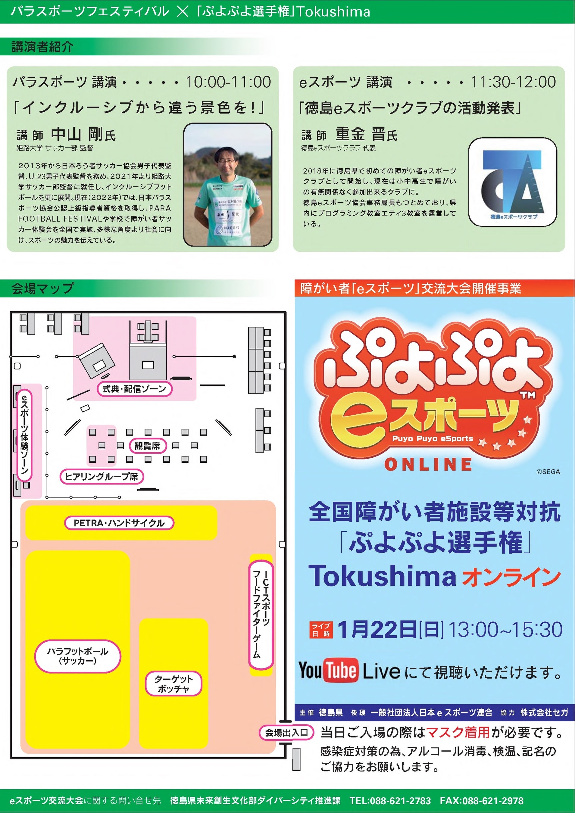 13:00~15:30 パラスポーツ体験イベント・ 第3回全国障がい者施設等対抗「ぷよぷよ選手権」Tokushima