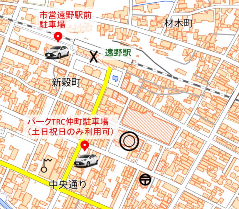岩手県遠野市 ※カーシェアの貸出場所は以下地図の2箇所です。