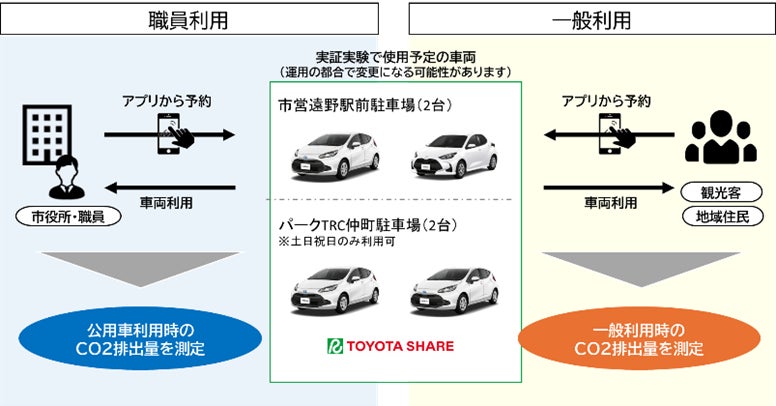 トヨタ自動車株式会社(以下、トヨタ)が提供するカーシェアサービス「トヨタシェア」は、東日本旅客鉄道株式会社(以下、JR東日本)、株式会社ジェイアール東日本企画と連携し、岩手県遠野市にて、市の公用車をカーシェアとして一般利用も可能とする実証実験を行います。