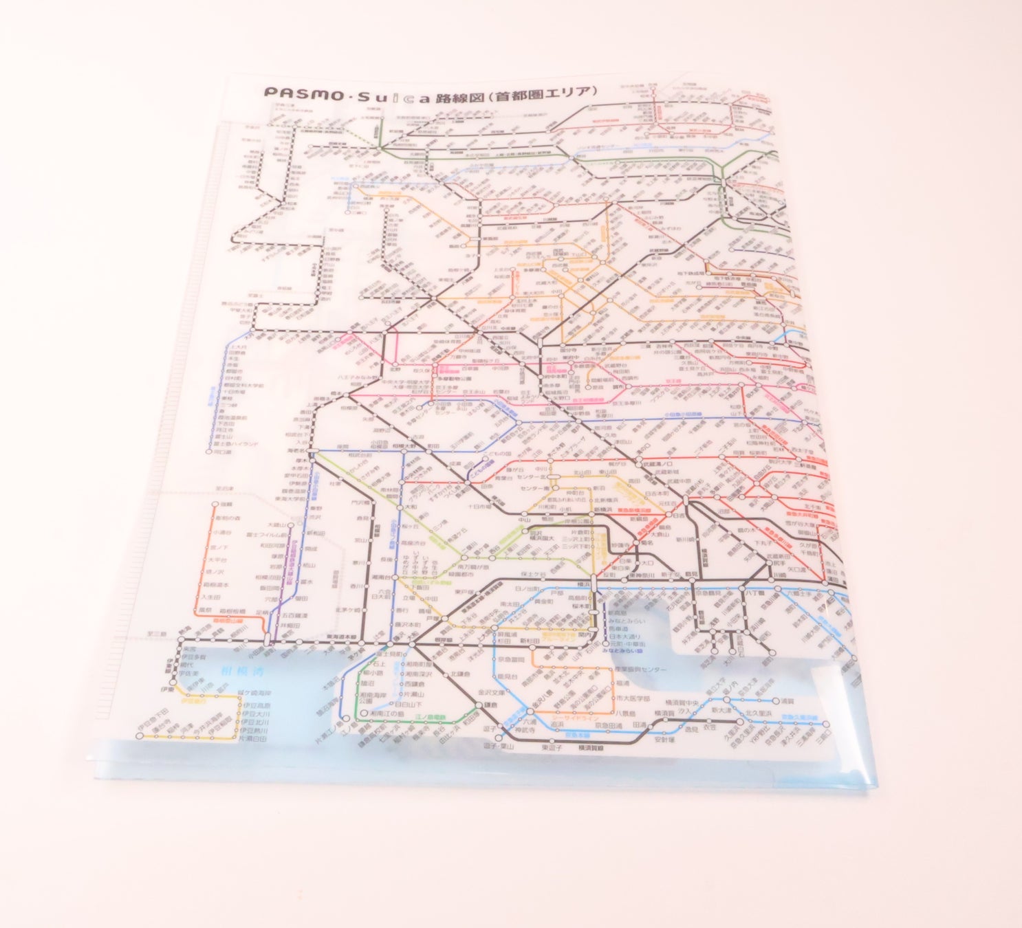 (1) PASMO・Suica路線図A4見開きダブルポケットクリアファイル 550円(税込)