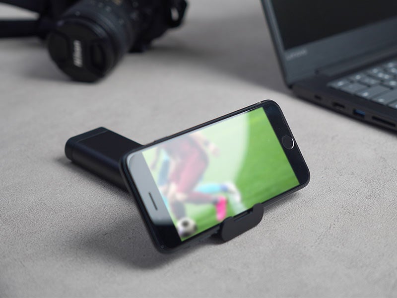 ボディには1.5mm厚のアルミを採用しカードをしっかりと保護します。底面部を引き出すとスマートフォンを立てられるスマホスタンド機能付。