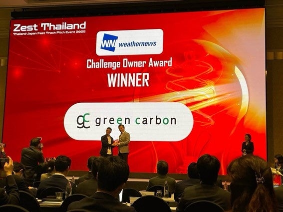 ネイチャーベースのカーボンクレジット創出・販売事業を展開するGreen Carbon株式会社(代表取締役:大北潤、以下Green Carbon(グリーンカーボン))は、タイのバンコクにて開催された、気候テック・カーボンクレジット分野のスタートアップが競う「Zest Thailand Fast Track Pitch(以下、本イベント)」に登壇しました。気候データと農業データを統合した革新的なカーボンクレジット創出モデルを提案し、世界最大級の民間気象データ会社の株式会社ウェザーニューズ(代表取締役社長:石橋知博、以下ウェザーニューズ)からチャレンジオーナー賞を受賞したことをお知らせします。