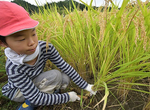 同校が位置する樫田地区は標高約350メートルに位置し、市内の他地域と比べ気温が低いため、例年1か月ほど早く田植えが行われ9月には稲刈りが始まります。同校では「田植えを通じ、自然と触れ合いながら、自分達が毎日食べているお米がどのように作られているか学んでほしい」という思いのもと毎年、地元の農家や保護者の協力を得ながら、田植えや稲刈りの授業を実施しています。