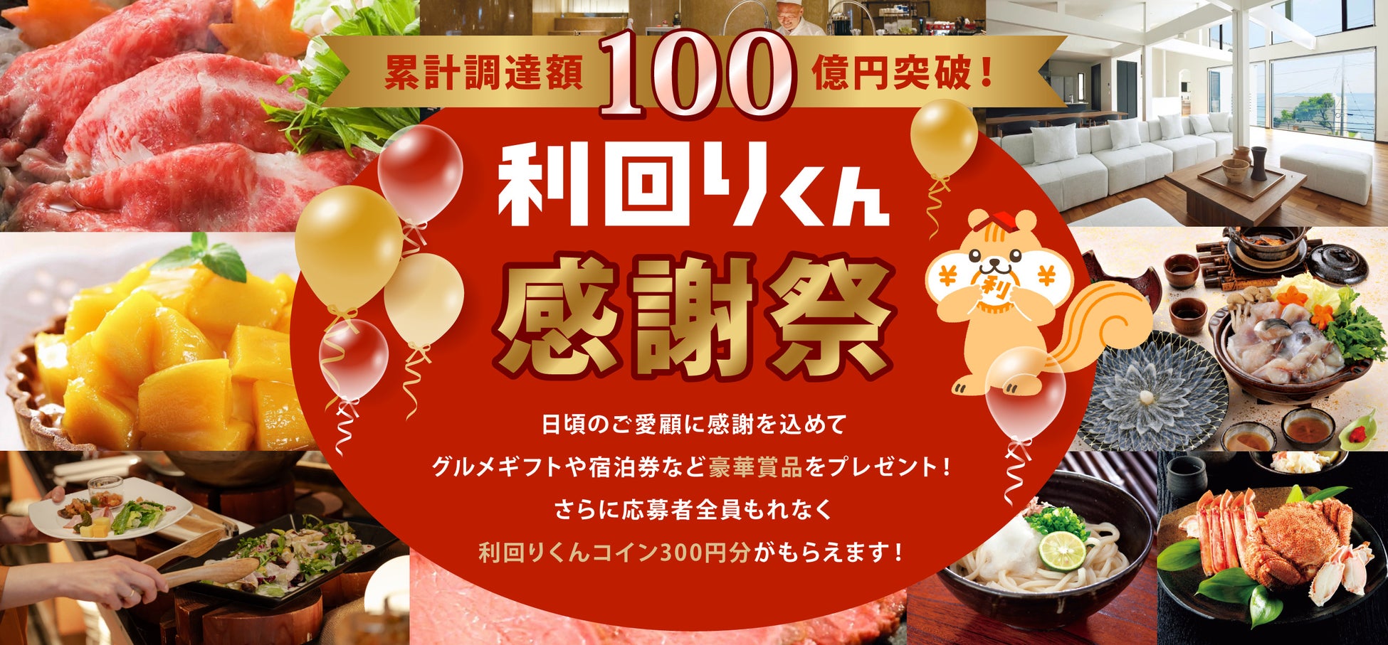 累計調達額100億円突破!利回りくん感謝祭 開催のお知らせ