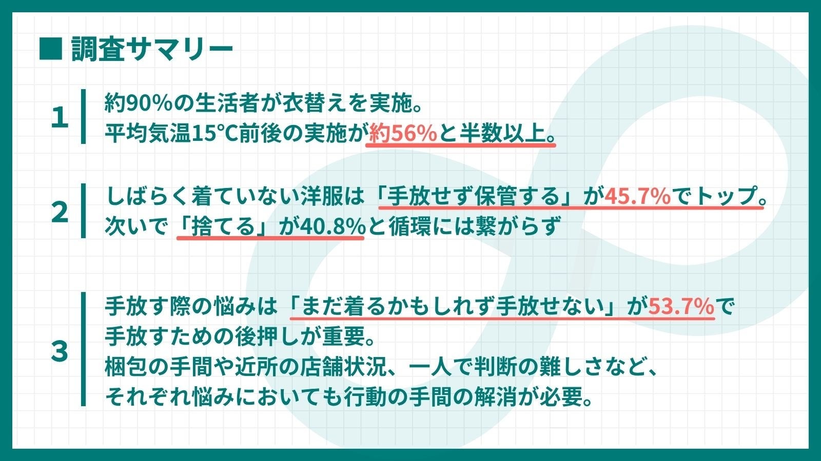 【約46%が衣替えの洋服を手放せず保管】今年もまた「まだ着るかも」をリユースで“すてない選択”へ