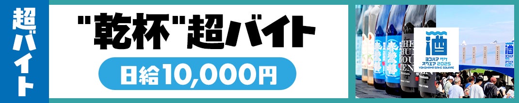 今回の超バイト企画では2025年7月12日(土)に横浜赤レンガ倉庫にて行われる、各地方の酒蔵が集まるイベント「YOKOHAMA SAKE SQUARE 2025」にて、声高らかに“乾杯”の発声をしていただく超バイトを募集します。就業後にイベントを思う存分楽しめる飲食コインなどの豪華特典も。お酒や地酒が好きな方、大声に自信がある方など、たくさんのご応募お待ちしています。