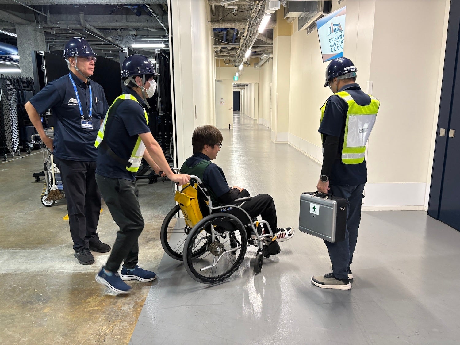 当日は沖縄アリーナ株式会社の社員が参加し、興行開催中を想定した実践的な訓練を行いました。
