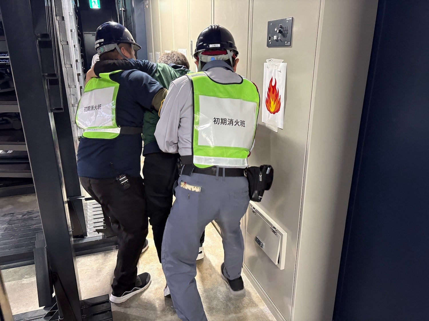 負傷者想定:分電盤付近にスタッフ1名が倒れている