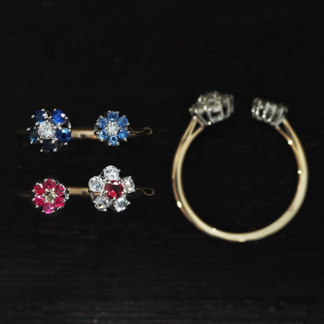 手に取りやすい価格帯のものから、サイズ感のある一点ものまで、幅広く取り揃えております。セミオーダーからフルオーダーまで、お仕立てのご相談も承ります。ご予算やイメージを伺いながら、枠にのせてのご提案や、デザインイメージのスケッチもその場で行いますので、初めての方もどうぞ安心してご来店ください。お手持ちのジュエリーと組み合わせたい方は、ぜひご持参のうえ、お気軽にご相談くださいませ。
