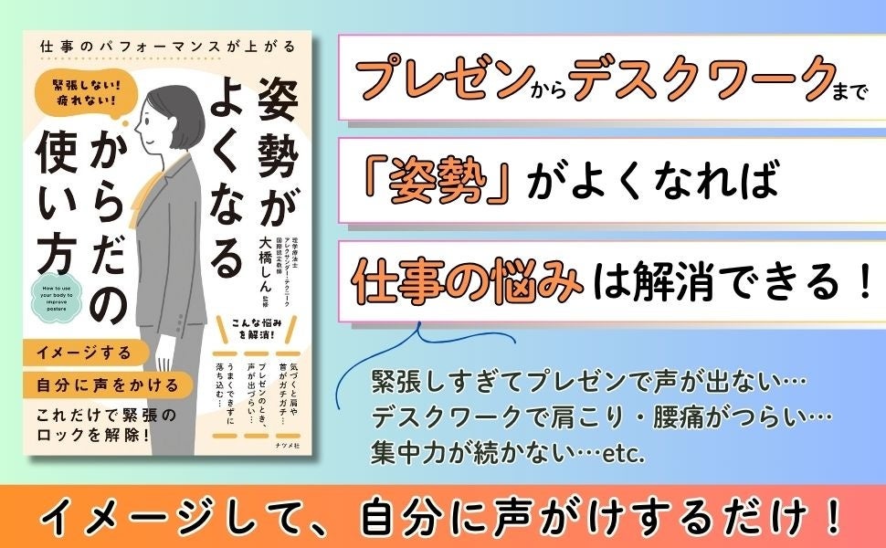 座り仕事で肩や首がいつもガチガチ…、プレゼンで声が出しづらい…、そんな悩みを解決! 『緊張しない!疲れない! 姿勢がよくなる からだの使い方』を5月19日に発売!