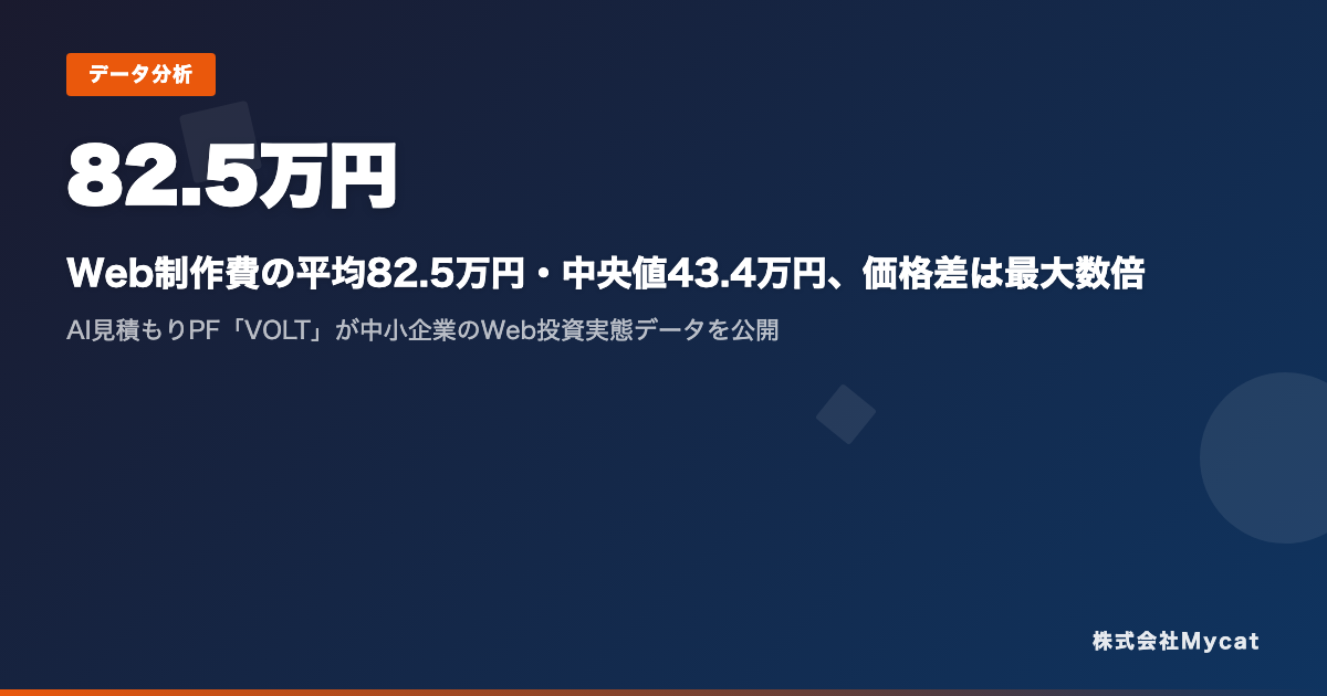 Web制作費の平均82.5万円・中央値43.4万円、価格差は最大数倍 ── AI見積もりPF「VOLT」が中小企業のWeb投資実態データを公開