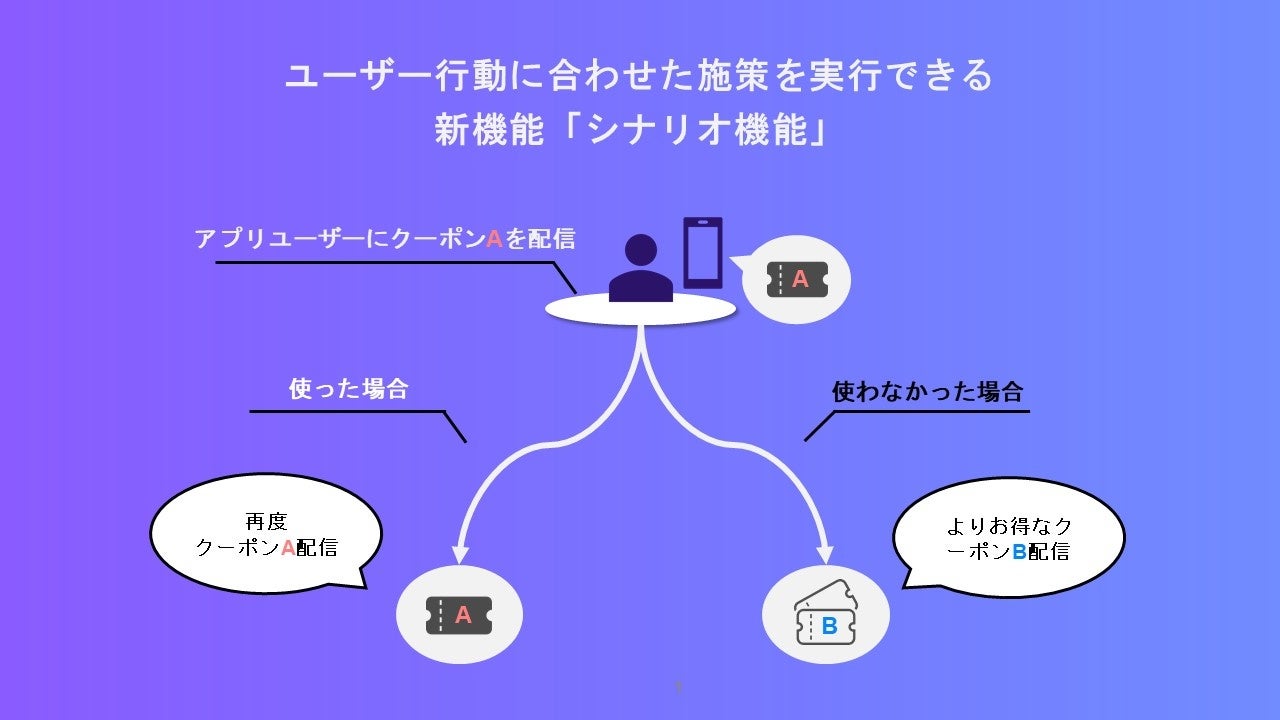 シナリオ機能とは、アプリユーザーの行動に応じた施策を実行できる機能です。
