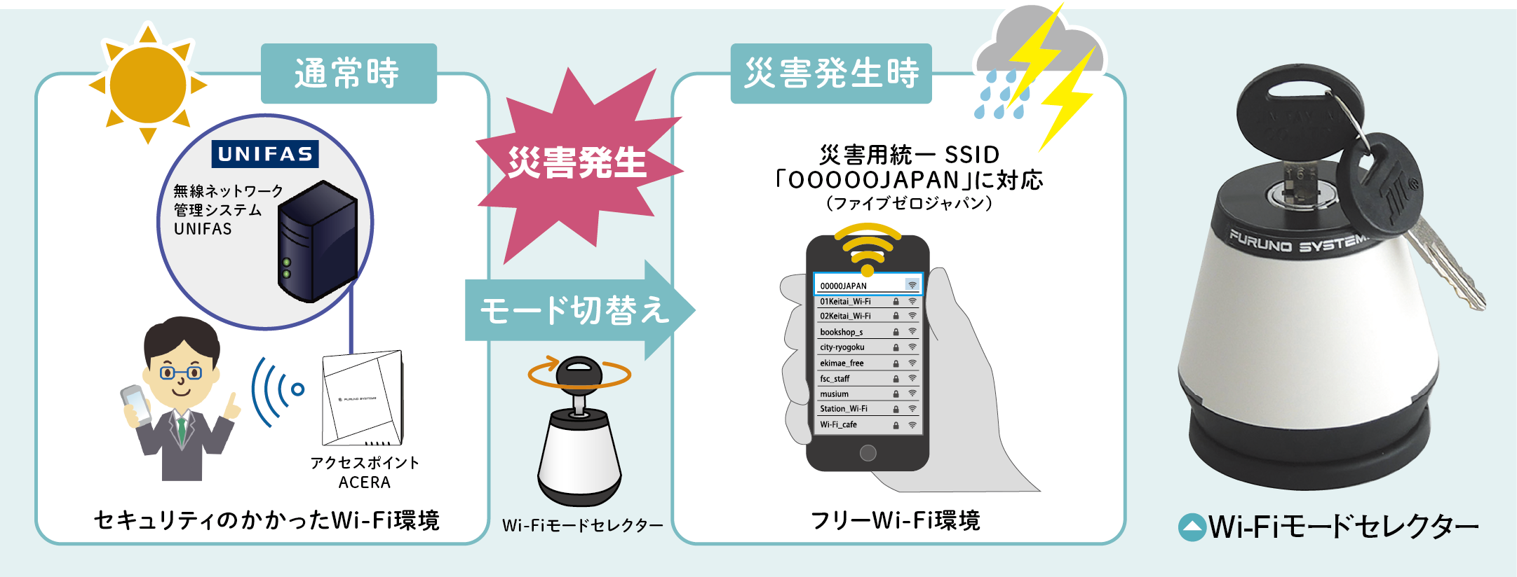 防災・減災対策を重視し、災害用統一SSID「00000JAPAN」に切り替わる公衆無線LANとして整備
