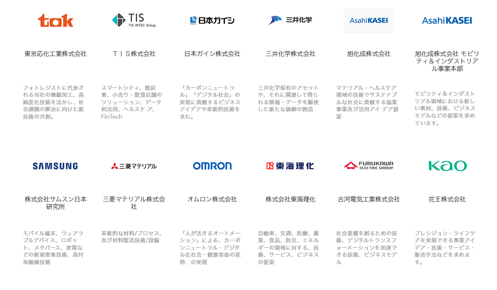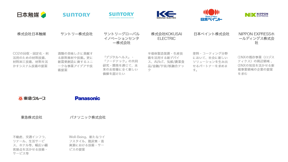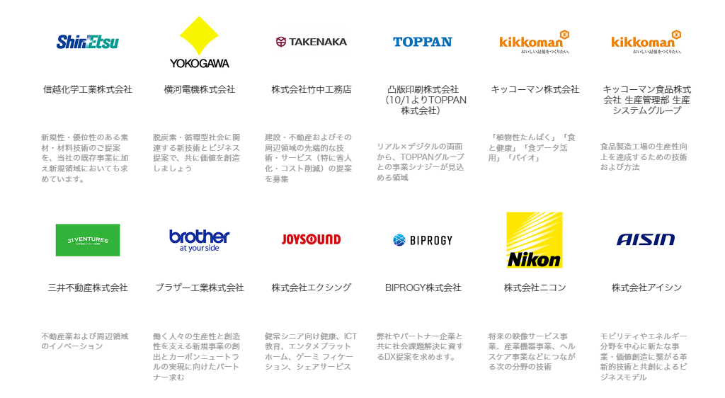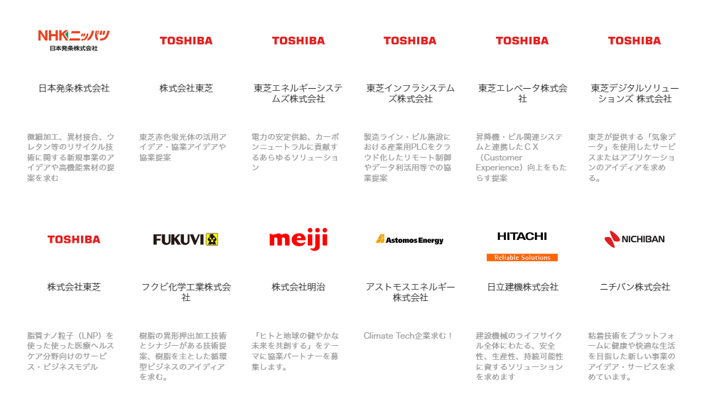 ILS2023パワーマッチング 参画大手企業とスタートアップとの協業テーマ |