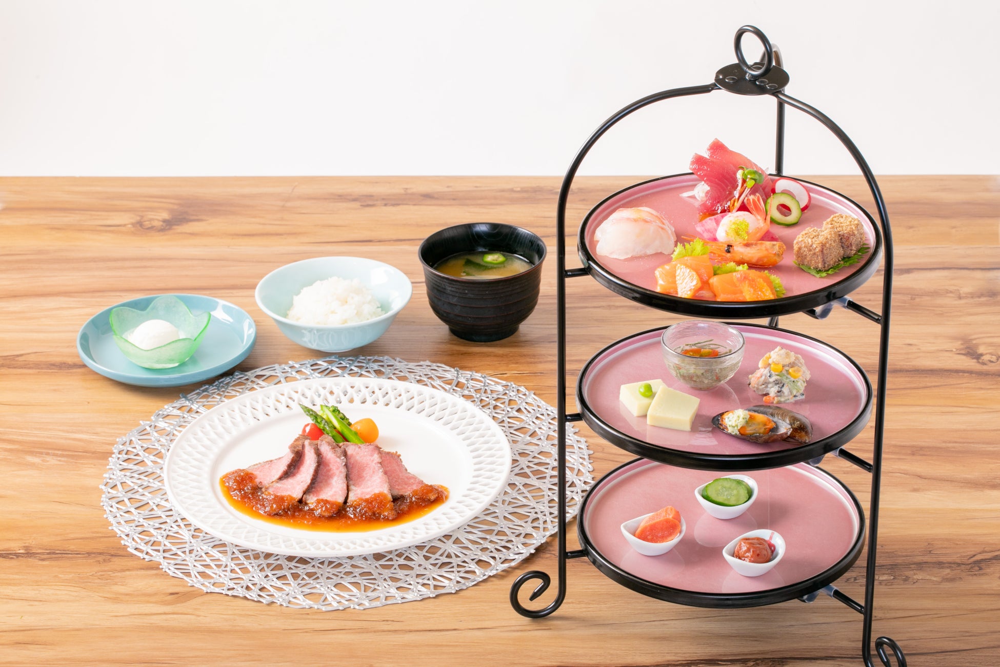 メニュー みやびスタンド 上段 創作お造り ・サーモンとブラッドオレンジのマリネ ・漬けまぐろ ごままみれ ・鰹のお造り ポン酢ジュレがけ ・真鯛の昆布締め 昆布茶塩で ・甘えびととびこわさび 中段 副菜4種盛り ・ムール貝の香草焼き ・ヤングコーンの白和え ・じゅんさいとトマトの酢の物 ・ずんだ豆乳寒天 下段 ・ごはんのお供(3種) 黒毛和牛のステーキ 山わさびソースで 炎舞炊きごはん オクラとわかめのお味噌汁 デザート ~お米アイス~ |