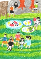 25 回目を迎えた 2025 年度も、年少から高校 3 年生までのキャンプ参加者を対象に、「絵を描く体験を通じて、好奇心や観察力、思考力、そして小さな成功体験を積み重ね、将来の血糖管理にも前向きに向き合えるように」という願いを込めて開催しました。子どもたち一人ひとりの感性があふれる作品が寄せられ、グランプリ1作品、優秀賞9作品、佳作30作品 が入選しました。