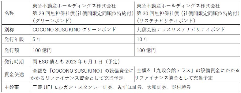 「COCONO SUSUKINOグリーンボンド」及び「九段会館テラスサステナビリティボンド」発行に関するお知らせ