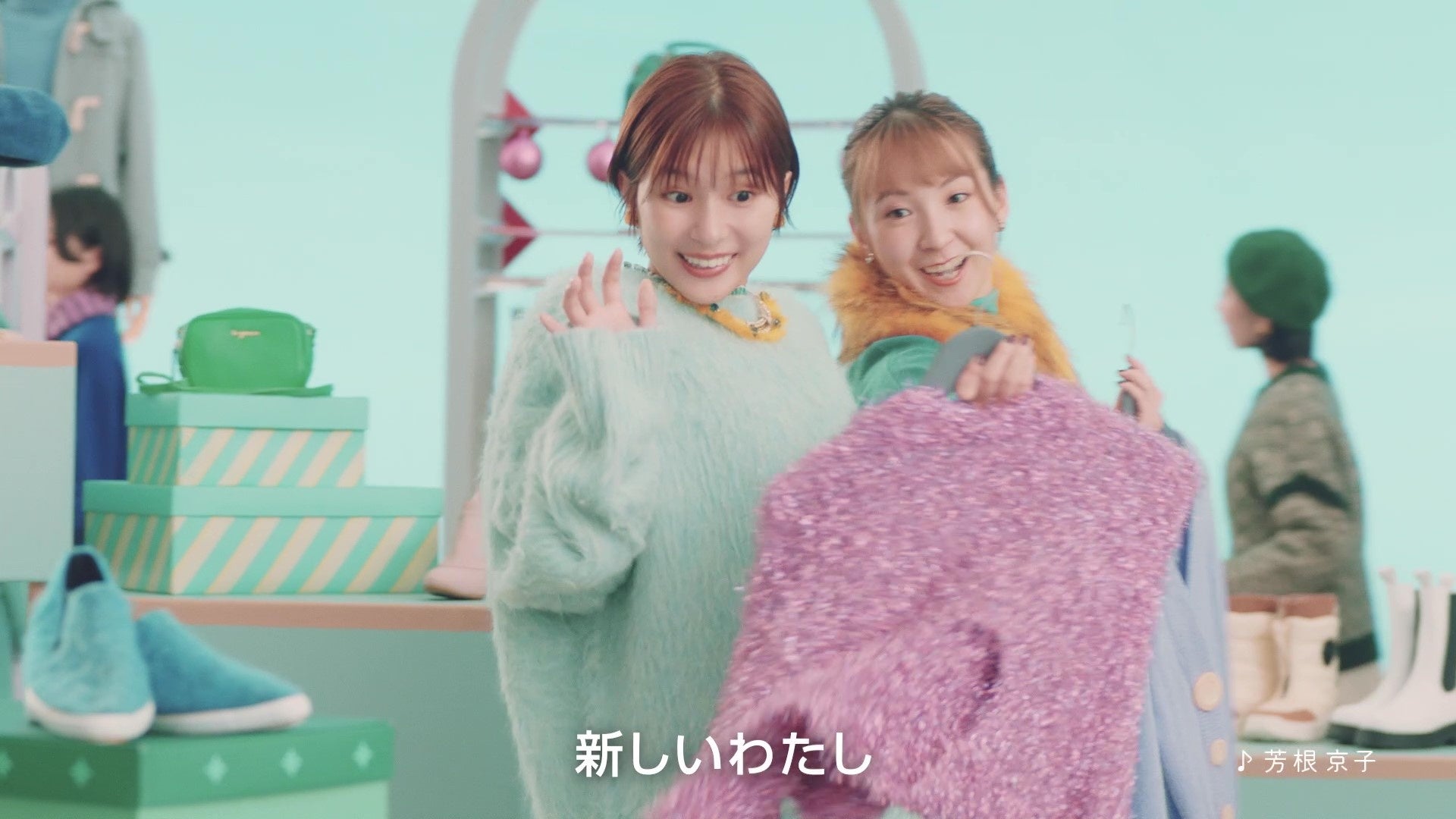 今回は、芳根さんがお買い物をする中で、今まで着ていなかった洋服やファッショングッズに出会い、「あたらしい自分」を見つけるというCMになっております。